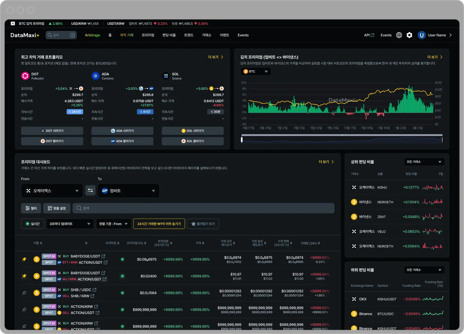 200,000+ 포트폴리오 조합 중 최고 프리미엄을 즉시 포착합니다.