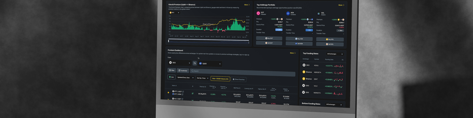 다수의 거래소에서 실시간으로 펀딩 비율을 비교하여 트레이딩 전략을 최적화하세요.